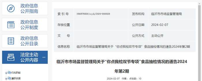 山东省临沂市市场监督管理局关于“你点我检双节专项”食品抽检情况的通告(2024年第2期)
