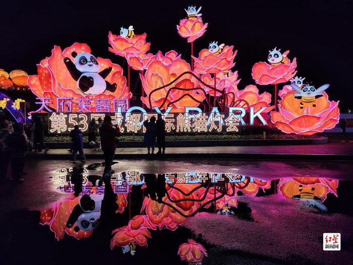 红星新闻网(记者 宋雅婷)2月8日报道 春节钟声即将响,福气满满喜洋洋。正在天府芙蓉园热烈举办的五粮液·第53届成都国际熊猫灯会华灯璀璨,流光溢彩。春节期间,天南地北的美食小吃、呆萌可爱的“花花”文创、360°沉浸式互动演艺、世运会主题“打金章”体育民俗活动……直接将新春的欢乐气息拉满。赏着华灯、看着演出、玩着运动、尝着美食、踏着笑声、陪着家人,伴着温情……在璀璨烟火中辞旧迎新,在欢声笑语中招财纳福,这个春节,注定不一般。