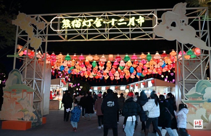 成都国际熊猫灯会“十二月市”100余家商家重现唐宋商业文化繁华景象,以经典美食、彩灯文创、潮玩好物、国潮旅拍、非遗传承、后备箱集市、围炉煮茶、互动游戏等特色业态打造消费新场景。春节期间,成都三大炮、乐山钵钵鸡、云南过桥米线、海南鲜椰奶、潼关肉夹馍、新疆羊肉串、长沙臭豆腐等非遗、老字号、网红美食应有尽有,跟家人逛灯会走累了,坐下来,喝一杯盖碗茶,吃上点特色美食,让味蕾得到满足,让快乐加倍。