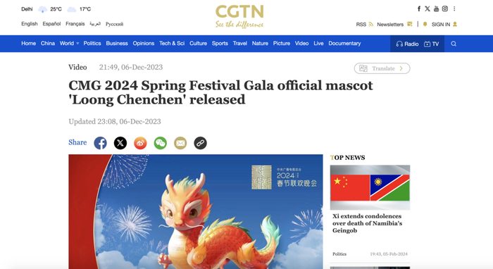 “龙的传人”形象凶悍了可不合适。于是,2024年央视春节联欢晚会发布的吉祥物“龙辰辰”便以萌萌的形象出现在大众视野中,胖乎乎的身体,大大的眼睛,随之而来的还有“龙辰辰”的官宣英文名"Loong Chenchen" 。央视还对"Loong Chenchen" 的名字做了解释: