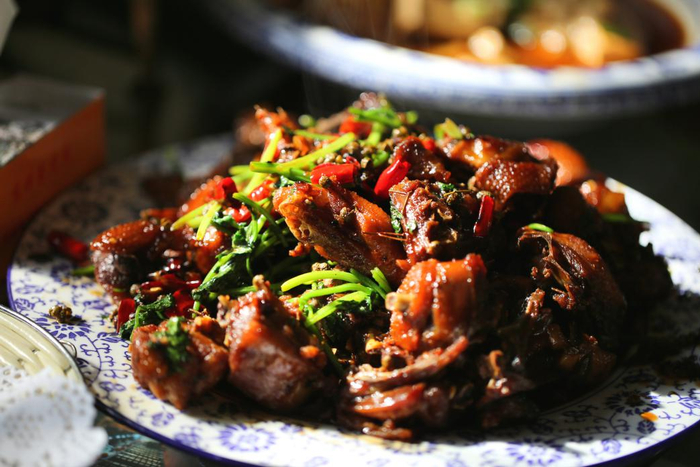 “来枣庄必吃辣子鸡”,绝对让你一吃一个不吱声。作为枣庄美食当仁不让的“王者”,一盆满满当当的辣子鸡端上桌,青色的辣椒配合着葱白、蒜瓣、花椒点缀着劲道鸡肉,够辣却“五味均善”,如果是怕辣,拿起一并端上来的单饼或者煎饼,让“辣味”和美味一起“卷起来”吃。此时,无论是主人、客人,还是大人、小孩都默契地不再说话,心中只有眼前的那份辣子鸡。