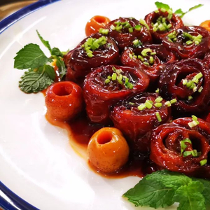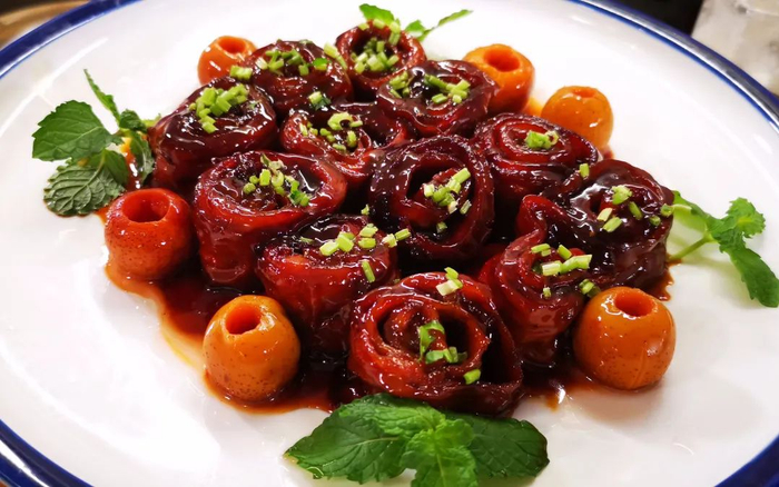 山东济南传统名菜九转大肠,酸、甜、苦、辣、咸五味俱全。先煮后炸、软韧香嫩,五味融合、入口筋道。因此非常受大众的喜爱,在年夜饭的餐桌上地位稳固。