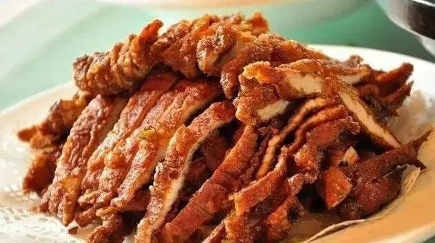 潍坊人爱吃炸货。潍县炸货中最有名、最好吃的当属五香炸肉。外酥里嫩,入口鲜香脆软,越嚼越香!