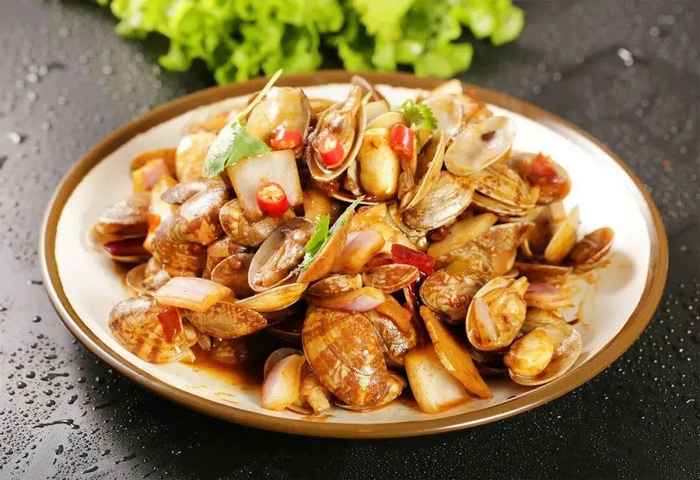 辣炒蛤蜊是一道海鲜菜,也被称为“天下第一鲜”、“百味之冠”。鲜味十足,更有辣椒的辣味刺激味蕾,谁能不爱呢?新鲜蛤蜊肥嫩多汁,是酒桌必备的“硬核”下酒菜。