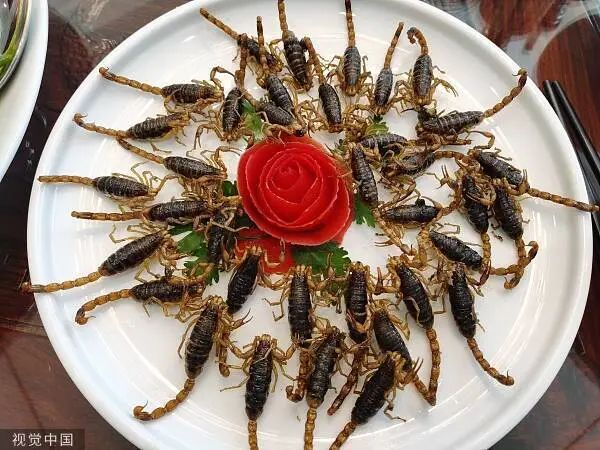 “油炸蒙山全蝎”蒙山特产、珍品佳肴。
