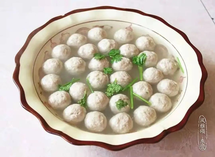 “一汤在桌,满厅清香”说的就是微山湖漂汤鱼丸,白色的鱼丸漂在汤中,再撒上点蒜苗、香菜,色香味俱佳。