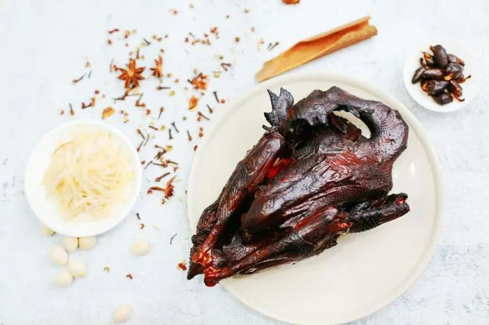 张汪板鸭是枣庄的传统名吃,采用20多种天然名贵中药材综合调配,精选微山湖蛋鸭,经过轻火慢炖和流程工艺煮制而成,具有风味独特,鲜嫩可口,肥而不腻的特点,令人回味无穷。