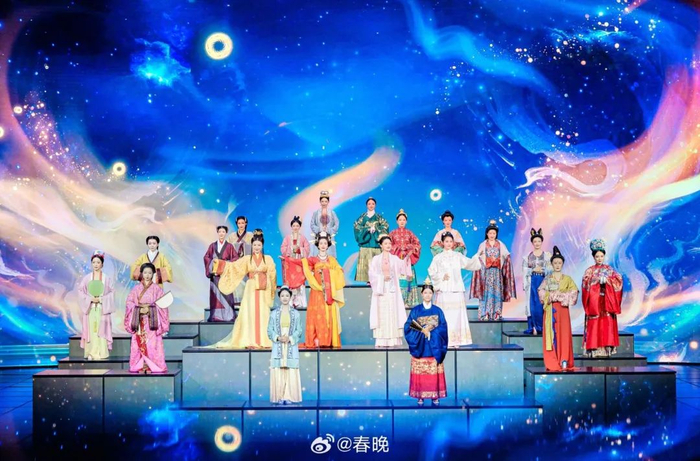93岁的敦煌艺术和工艺美术设计研究专家常沙娜首次亲手为春晚设计《年锦图》,优美典雅、别具韵味的中国传统纹样,寓意吉祥喜庆和对幸福繁荣的美好向往,将长乐安康、富贵如意的祝福送给广大观众。春晚创演秀《年锦》则选用中国古代寓意吉祥祝福的代表纹样,上演了一场人从画中来的“时装大秀”。通过歌曲+虚拟合成技术,跨越千载的文化元素焕发新生,东方美学风韵惊艳全场。