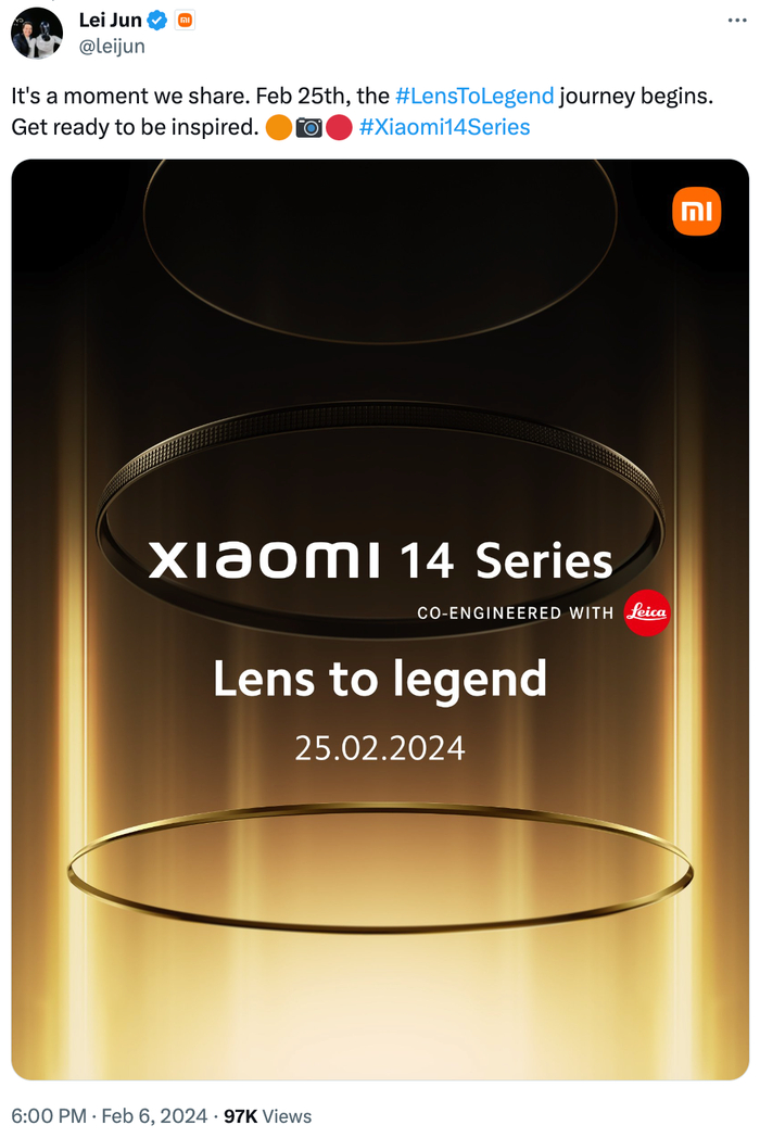 据雷军预热,小米将于2月25日举行小米14系列全球发布会,小米14 Ultra预计也在其中,而2月25日是星期日不符合国内发布会举行规律,个人猜测国行发布会或许更早、估计2.21-2.23期间?🤔不出意外也将是年后第一台影像旗舰,近日也有不少博主暗示春节期间会进行使用体验。