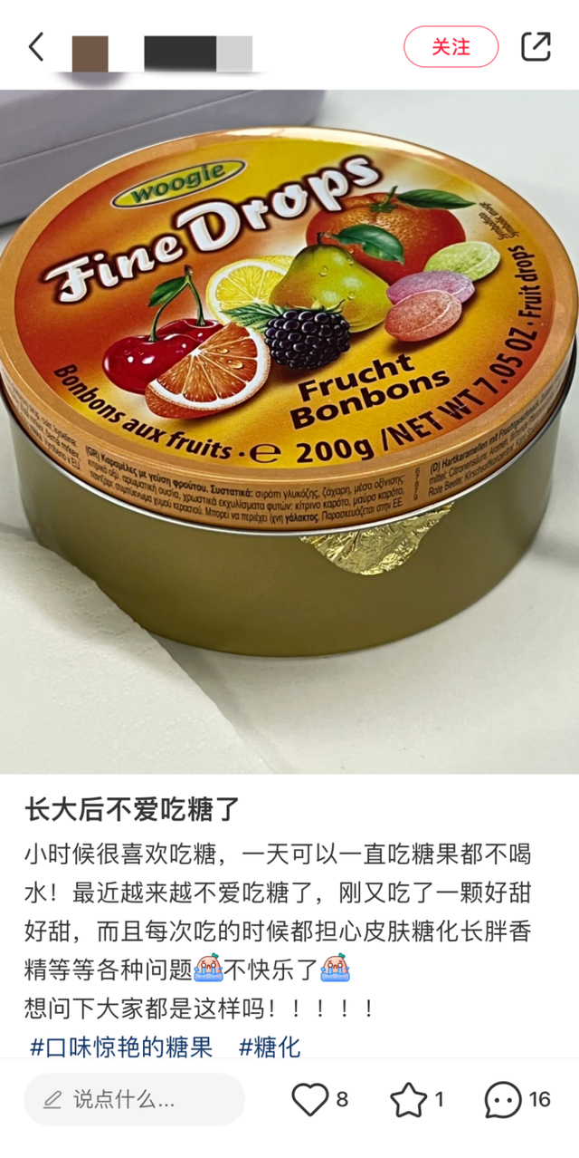 还有网友说,明明记得以前很喜欢吃,小时候家里阿尔卑斯、悠哈悠哈、牛轧糖、水果软糖没断过,但现在基本不吃糖,只有喝喜酒的时候,还有在餐厅等位会拿一两颗陈皮或是薄荷糖。