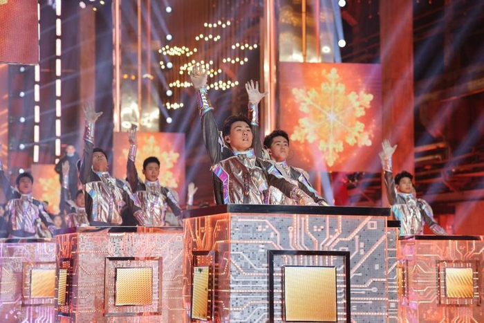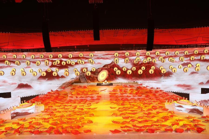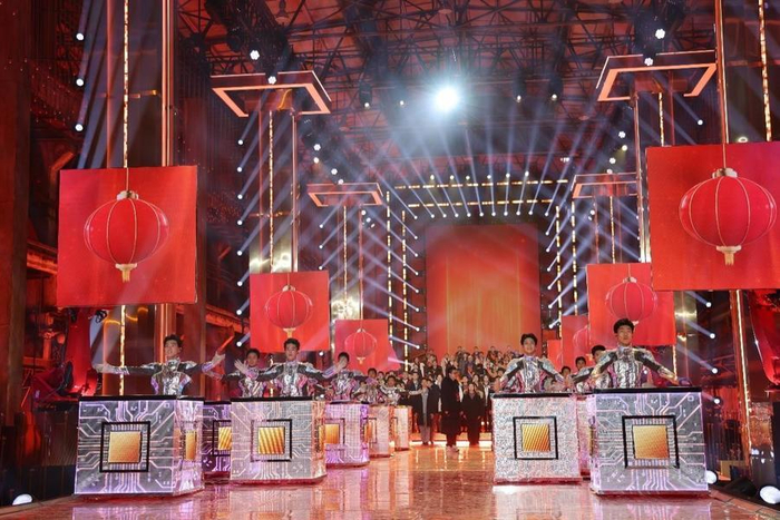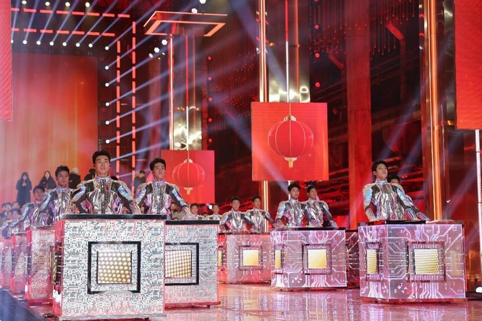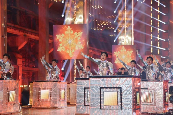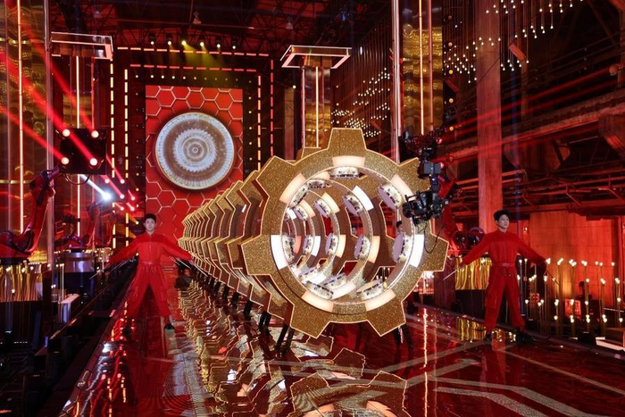 开场舞中,2米内径的“齿轮鼓”首先惊艳了亿万观众,七面金色圆鼓镶嵌在齿轮内侧,显得格外与众不同,凸显出满满的“工业风”,视觉冲击力极强。