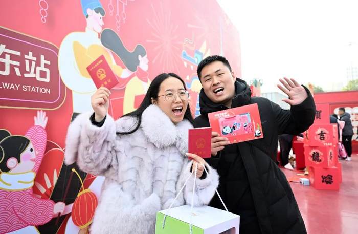 这一天,成都东站人群如织。有从山西远道来蓉看望新出生小孙子的爷爷;有除夕在东站值班的工作人员,父母送来饺子,怕他赶不上年夜饭……在成都东站设置的“幸福驿站”前,专业的摄影师为这些温暖的瞬间定格,旅客们留下了温馨的全家福,美好的故事接连上演。