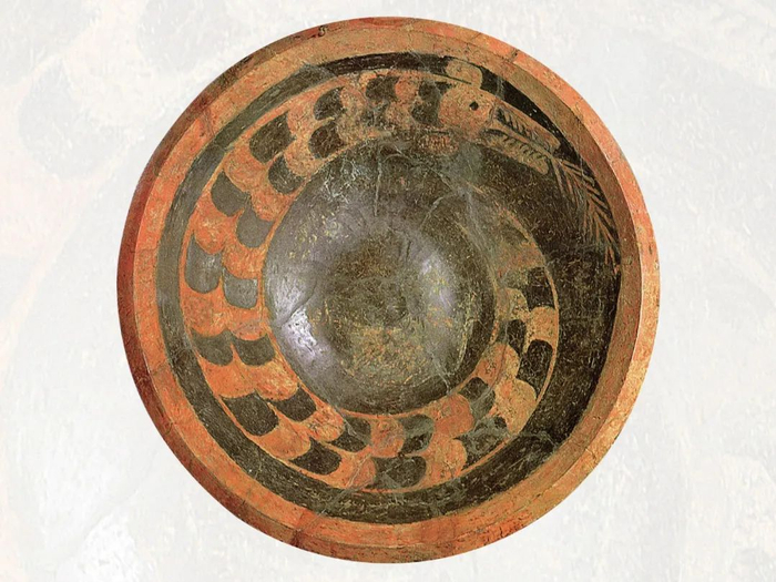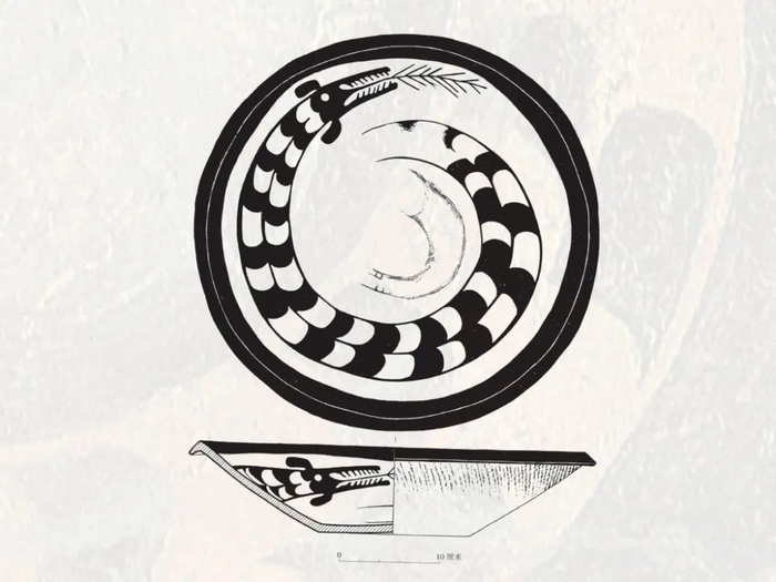 一条是1980年出土于山西临汾陶寺遗址的龙盘,距今4000多年。当时一共出土了4件龙盘,最广为人知的是第3072号墓龙盘——盘内红色彩绘蟠龙纹,以黑色陶衣为留白,表现双列横焰状龙鳞片,龙口衔麻黄草。