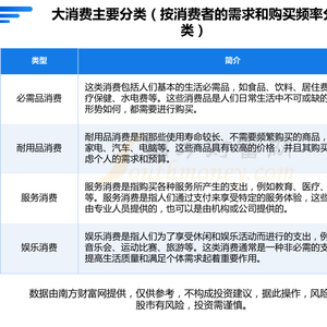 大消费是指人们日常生活中必需的、重复购买的商品和服务。它包括各种日常消费品、食品、衣物、住房、交通工具、通信设备以及娱乐等方面的开支。