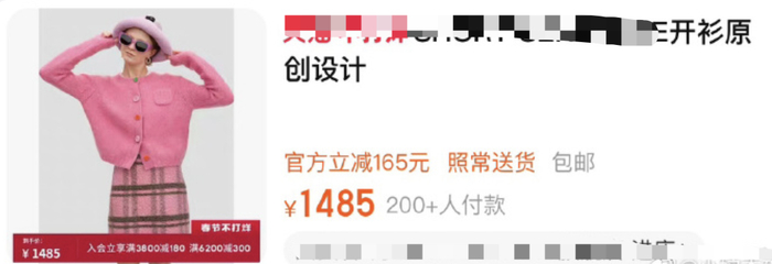在小品播出后,#章若楠毛衣#这一词条就冲上微博热搜。据相关博主介绍,章若楠所穿的毛衣是国内某独立设计师品牌,在某购物平台上售价一千多元。