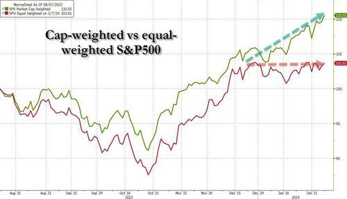 目前,标普500指数的市盈率为24倍,已经超过了疫情前的高点,接近上一轮牛市顶峰时的水平,而七巨头的市盈率则是大盘的两倍。