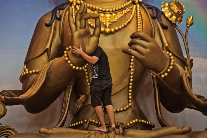 2022年1月19日,印尼棉兰。当地寺庙的工作人员在清理佛像,准备迎接中国农历新年。(图/视觉中国)