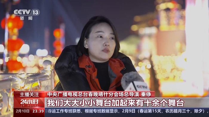 中央广播电视总台春晚喀什分会场总导演 秦铮:我们大大小小舞台加起来有十余个,而且在每个舞台上我们都做了充分的利用,不同空间的镜头里的呈现跟展示,这次我们真的是打造了一个递进式观影的效果,让大家层层有惊喜。