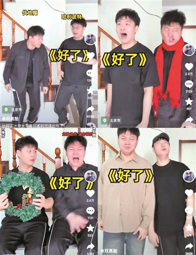 1998年出生的高超和高越是账号“双高胎”的主理人。这对双胞胎组合是在短视频平台上最早制作2024年春晚“押题”小品的创作者。目前,他们的账号已经更新了45期与春晚小品有关的原创短视频。