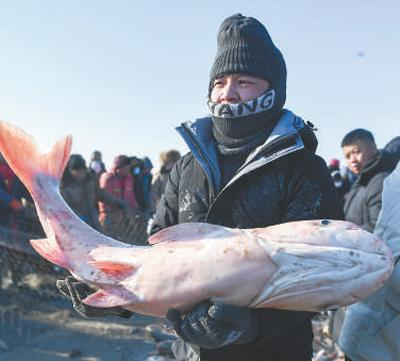 “这网收获应该不小。”查干湖第二十一代鱼把头辛继龙告诉记者,今年一开捕就收获颇丰,最大一网达到36万斤。据当地有关部门测算,今年捕捞量会超过400万斤,比往年增加约三成。
