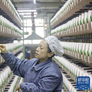 春节期间,各行各业的工作人员坚守工作岗位,保障各项工作安全顺利运转。 2月10日,纺织工人在位于江苏省泰州市的江苏同欣化纤有限公司生产一线作业。新华社发(汤德宏 摄)