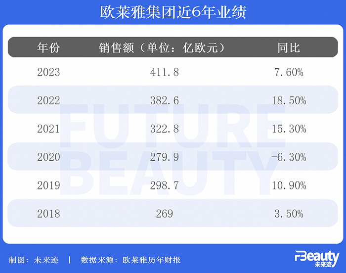 这是欧莱雅销售额首次突破400亿欧元大关,同时按人民币计算也是首次超过3000亿元,可以说是欧莱雅业绩创下里程碑意义的一年。
