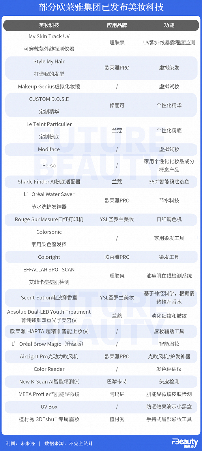 可见,欧莱雅集团正在不断挖掘前沿科技潜力,来为美妆工具的科技化、智能化赋能。