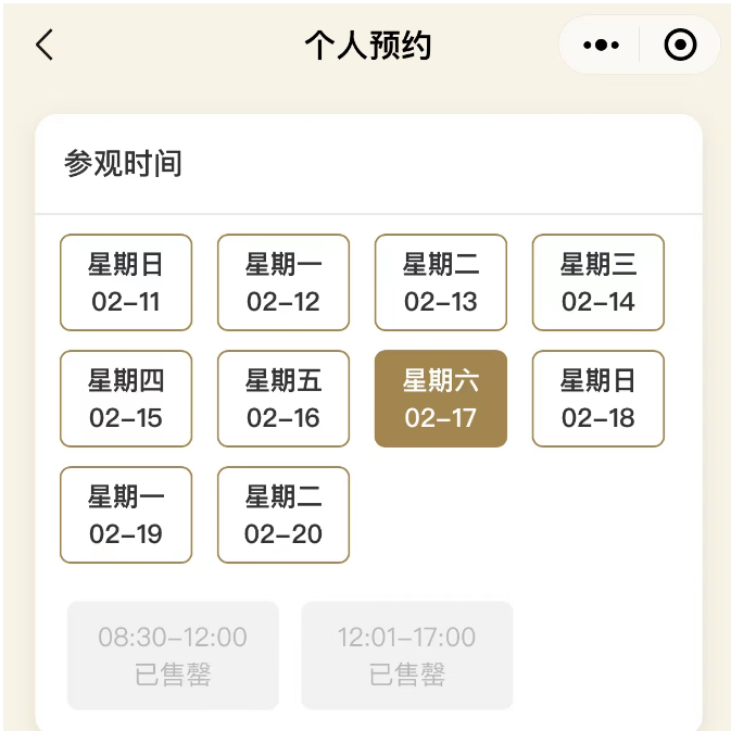 国家博物馆门票预约系统显示,2月11日(初二)至17日(初八),国家博物馆参观门票已全部约满。