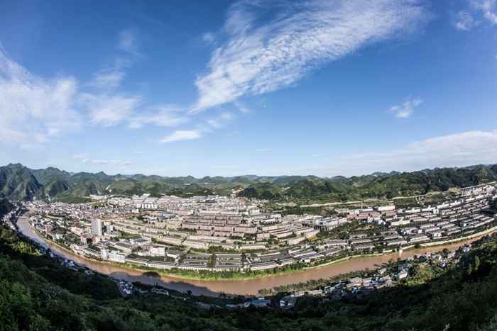 沿河而建,群山环抱的茅台镇