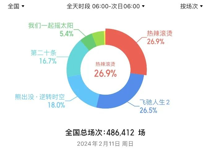 今年春节档电影共有8部,其中5部为真人电影,3部动画电影。按照院线排片量,排在前三名的分别为《热辣滚烫》、《飞驰人生2》和《第二十条》。