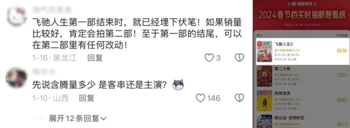 因此,前作打下的票房让这部含“腾”量100%的《飞驰人生2》,一经曝出便备受关注。该电影也曾占据2024年春节档实时猫眼想看榜榜首。