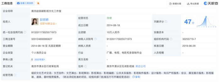 天眼查官网显示,当前赵丽颖也是海润影业的股东,持股比例为1.7515%。这家公司的明星股东除赵丽颖外,还有刘诗诗等人。