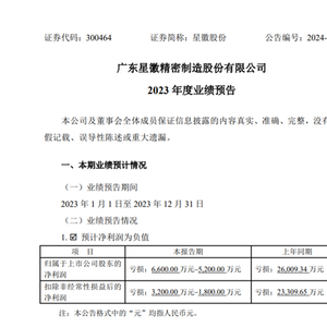 近期,不少上市公司纷纷发布自己2023年的业绩预报,而星徽股份的业绩在对比去年依然处于亏损。