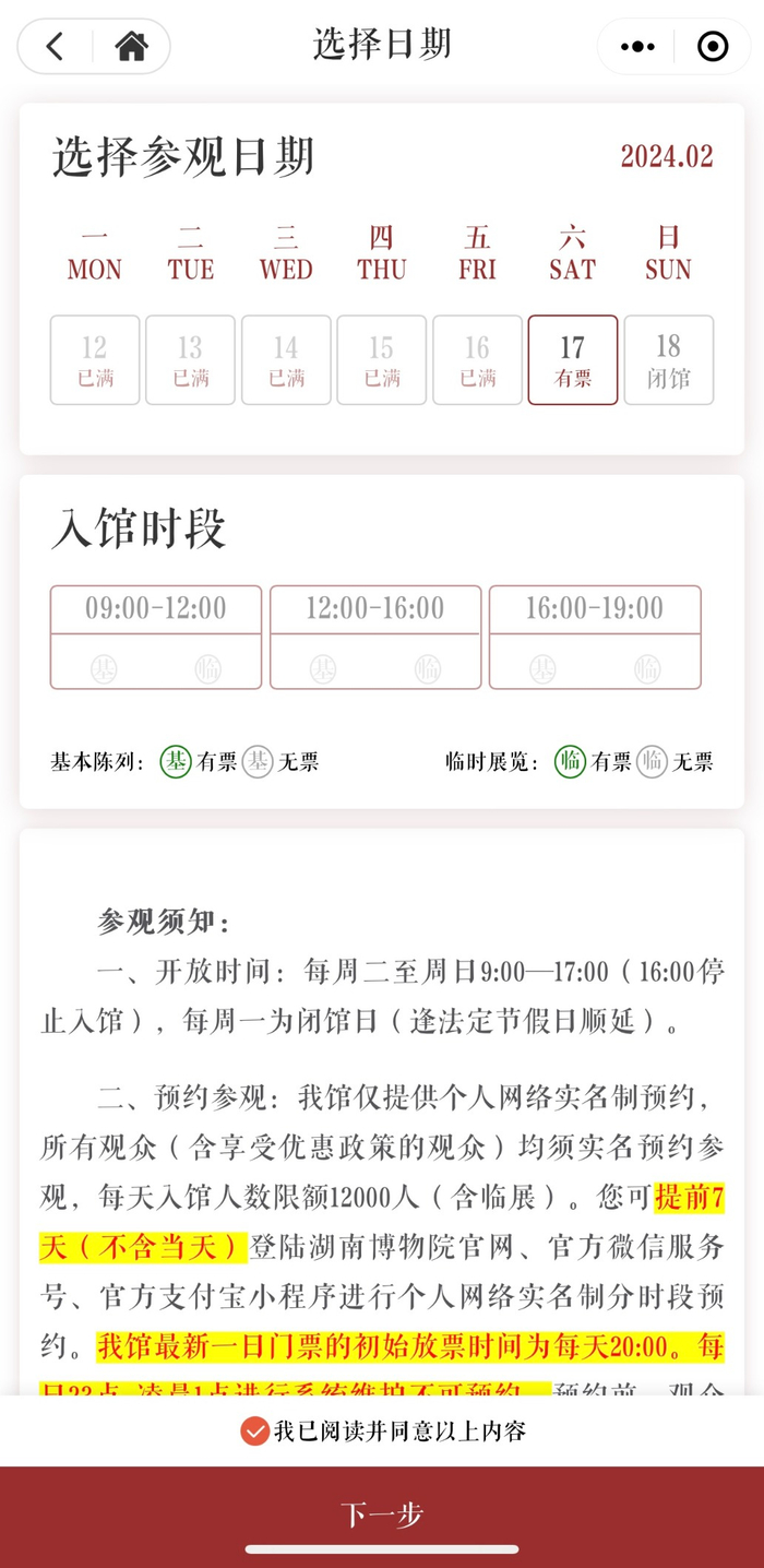 湖南省博物院门票预约页面。