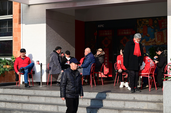 2024年2月10日,上海茂名北路。新年伊始,一些上了年纪的人们正在肯德基门外喝咖啡晒太阳。