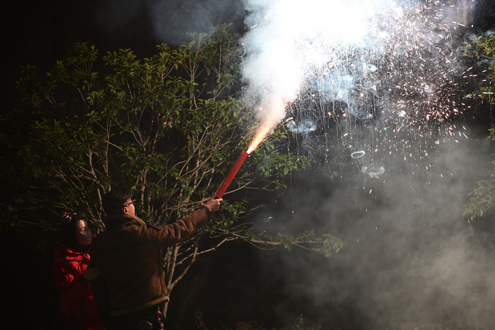 2024年2月10日,松江九亭。放烟花的人。