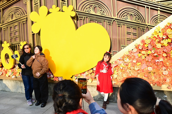2024年2月10日,上海茂名北路。在张园里的打卡留影的人们。