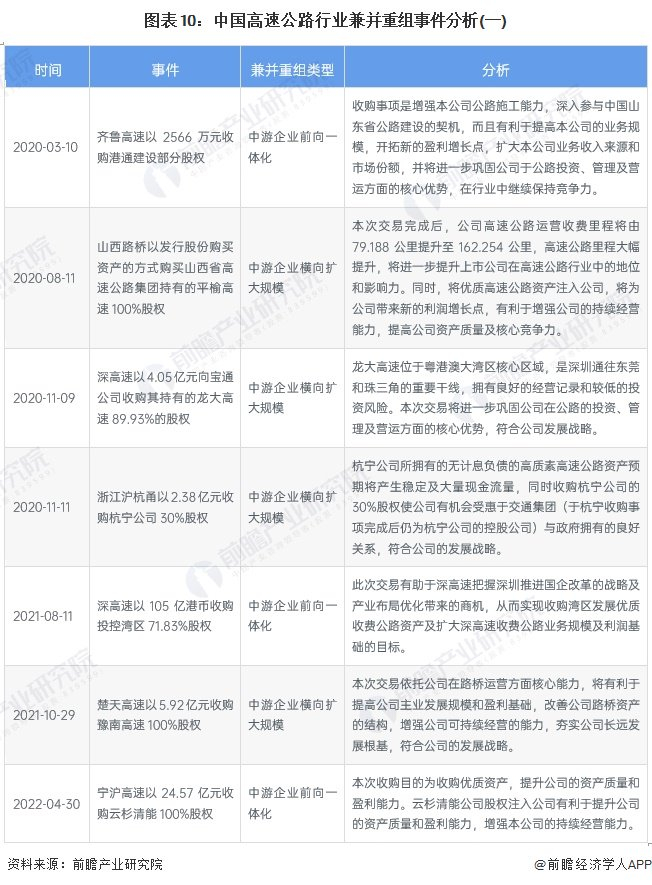 中国高速公路行业的兼并重组事件较多,兼并重组的类型主要为中游企业横向收购扩大规模。