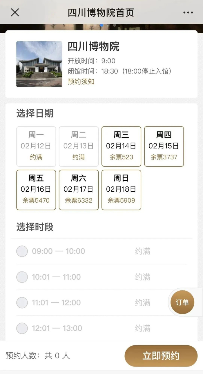 小布查询发现,成都博物馆2月12日门票已约满,未预约勿前往。