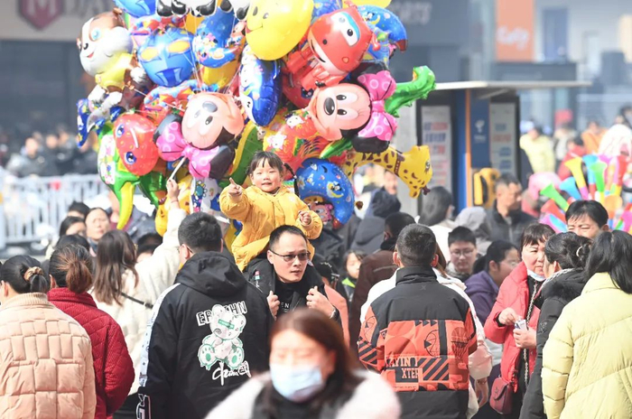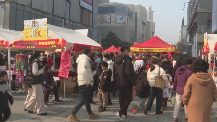 位于徐州市中心的文庙街区,文创市集人潮涌动。市集上汇聚了近百家非遗手作、文创品牌、地方特色年货,让人目不暇接,红火的新春灯谜会吸引着过往市民前来打卡。