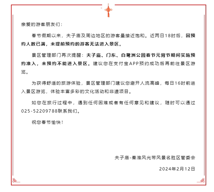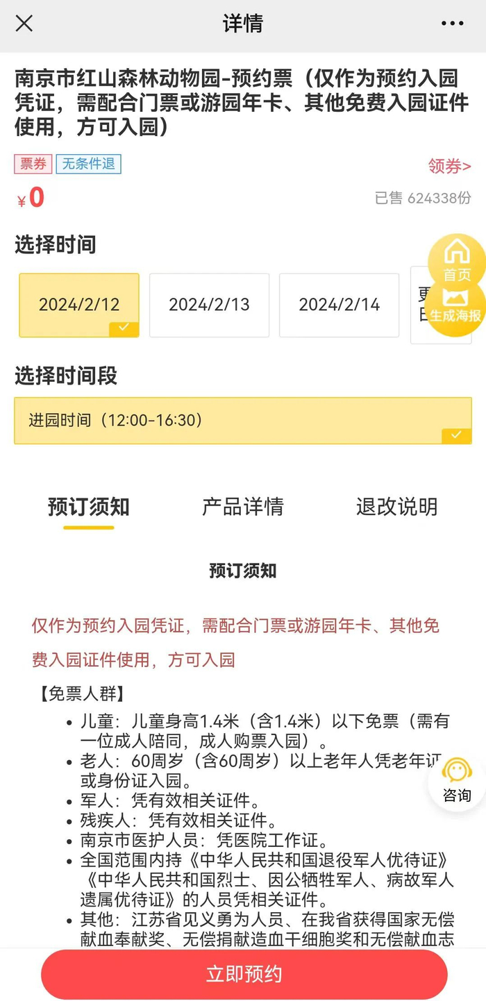 2024年2月12日、13日、14日南京总统府景区预约售票数量都已达上限。