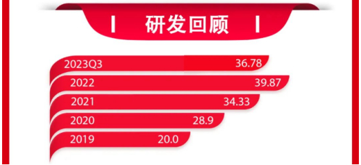 根据业绩报告,石药集团在2023年前三季度的研发费用为36.78亿元,同比增加25.9%,约占成药业务收入19%。目前,约60个重点在研药物已进入临床或申报阶段。其中7个已递交上市申请,17个处于注册临床或即将递交上市申请的阶段。而从近五年的研发投入变化可以看到,石药集团去年前三季度的研发费用已经接近2022年整年的研发投入,全年有望再创新高。