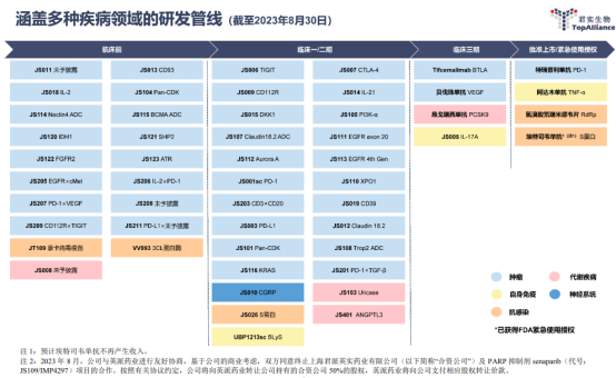 针对研发费用下降原因,君实生物在2023年半年报中将其归结于加强费用管控,优化资源配置,聚焦更有利的研发管线。对比2022年年报和2023年半年报中披露的研发管线,除特瑞普利单抗研发进展外,产品管线总量减少一项。去年8月,君实生物与英派药业进行协商,基于商业考虑,双方同意终止上海君派英实药业有限公司及PARP抑制剂senaparib项目的合作。