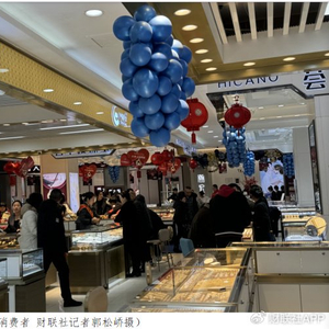 财联社2月12日讯(记者 郭松峤)春节期间,各地黄金市场出现“淘金”热潮。财联社记者在黑龙江省七台河市观察到,在一家名为大商新玛特的商场里,就开了8家金店。距离该商场不远处的步行商业街也有10家左右,不少年轻人在柜台前咨询试戴。此外,龙元素金饰品销量火爆。