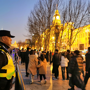 上海外滩迎来大客流,黄浦警方加强安全管理。本文图片均为 黄浦公安 供图