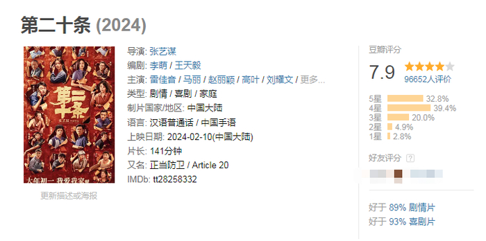 大年初一,张艺谋新作《第二十条》上映。