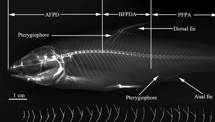 这是 X 光下的一条淡水鱼。肌间骨是那些 I 字形、Y 字形的小刺,是一次次把我们送去急诊室的罪魁祸首。