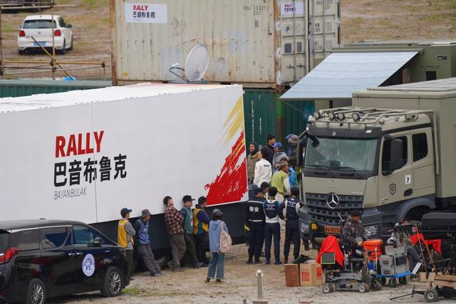 在上海国际赛车场拍摄期间,这里搭起了巴音布鲁克拉力赛拱门、车队围场。黄一豪介绍,“停车场是石子路面,剧组又加了草屑、扬尘,路面百分之百还原巴音布鲁克的样貌。除了演员,还有专业车队、车手和技师入驻,就像一场真实的赛车比赛。”