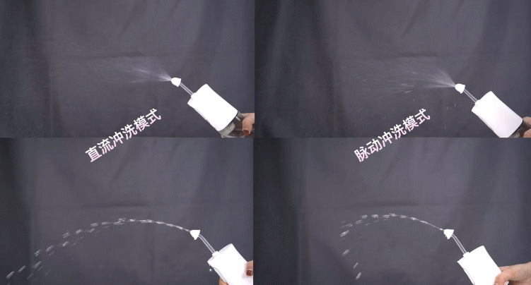 根据水流的形状和压力,分两种模式、每个模式包含弱档和强档:直流冲洗模式和脉动冲洗模式。