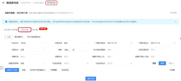 (2)税务数字账户-发票勾选确认-抵扣类勾选-【抵扣勾选】模块勾选